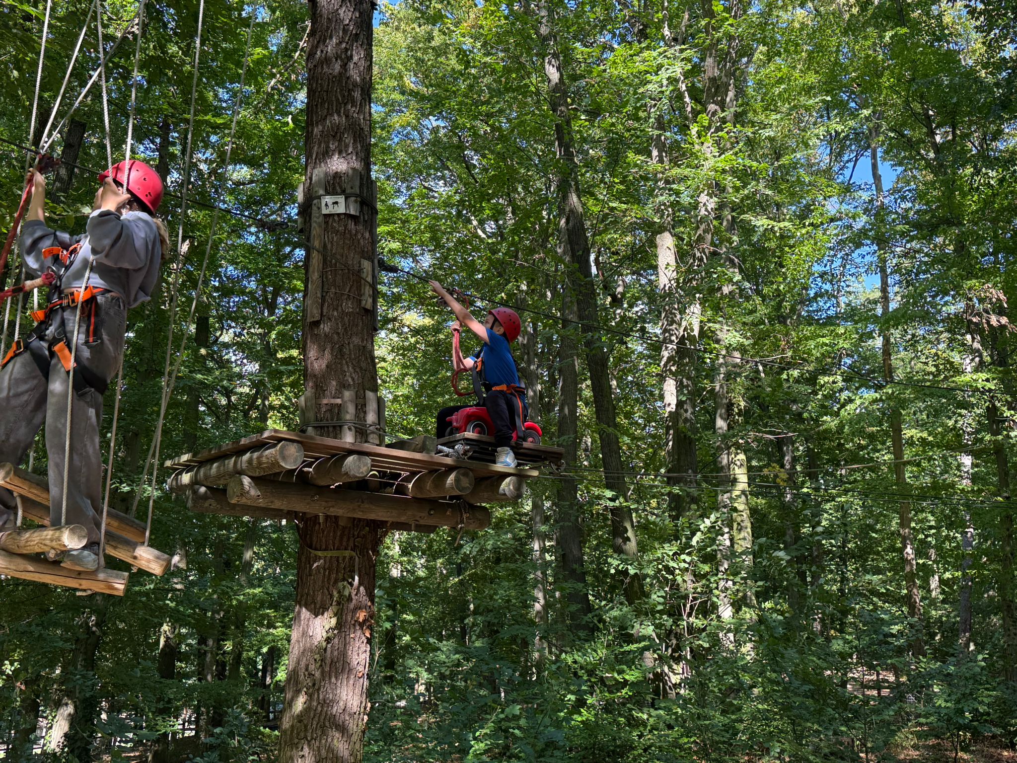 Am 16.09.25 machten sich die Klassen 5a und 5b auf den Weg in den Abenteuerpark Moritzburg. Hoch oben in den Baumwipfeln kletterten sie über spannende Parcours, meisterten Mutproben und stärkten ihren Teamgeist.