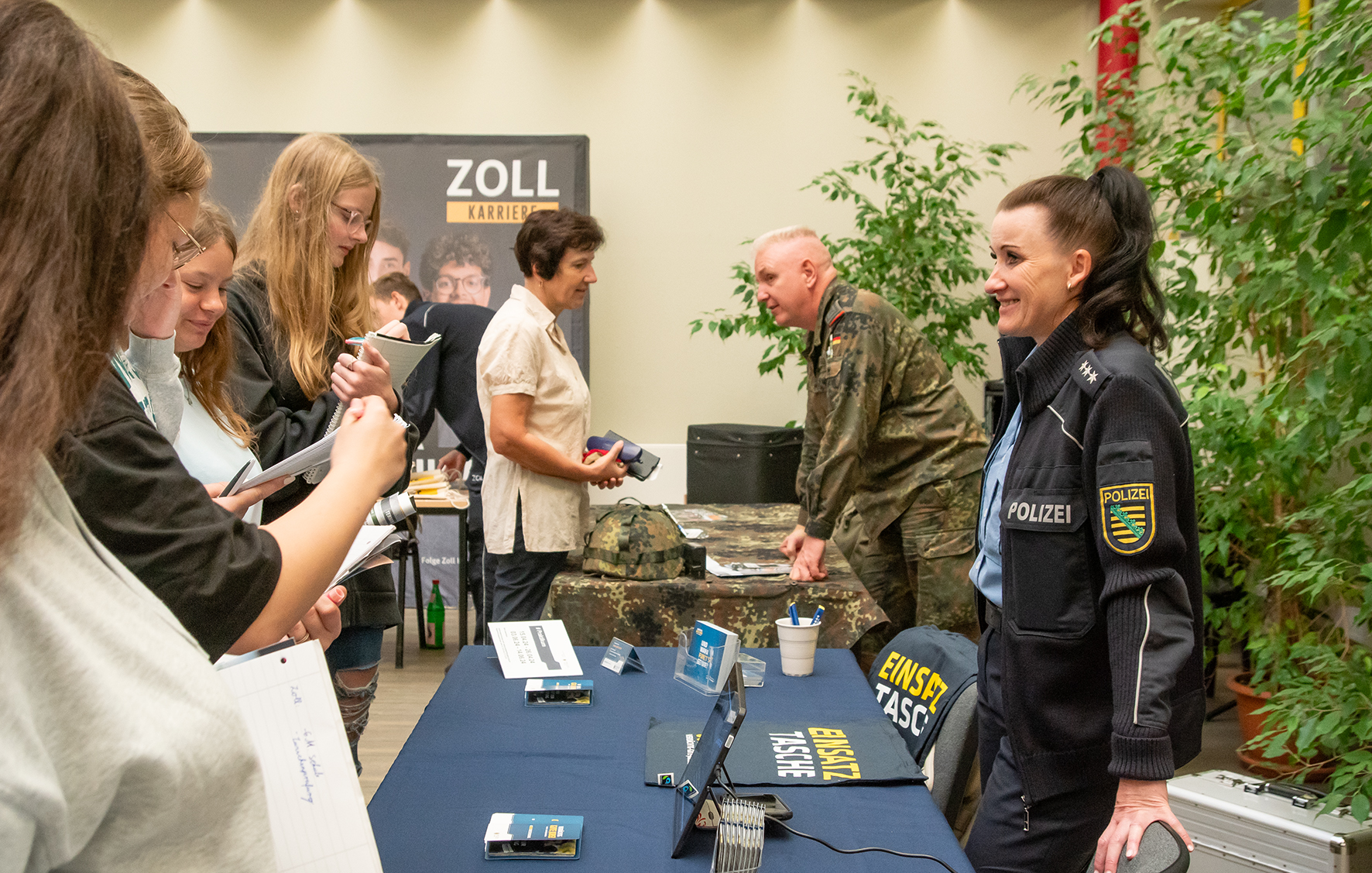 Uniformen stellten sich am 27. September 2023 vor: Bundespolizei/Landespolizei, Hauptzollamt, Bundeswehr, Justizvollzugsanstalt, Sachsenforst, die Johanniter, das DRK und