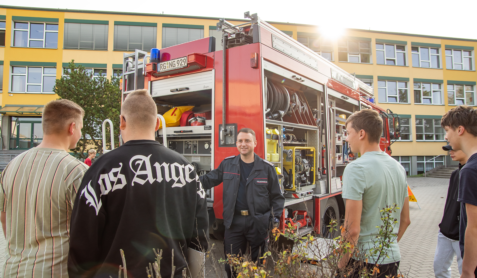 unsere Gröditzer Feuerwehr. Von der Aula bis zum Schulhof wartete ein großes Aufgebot.
