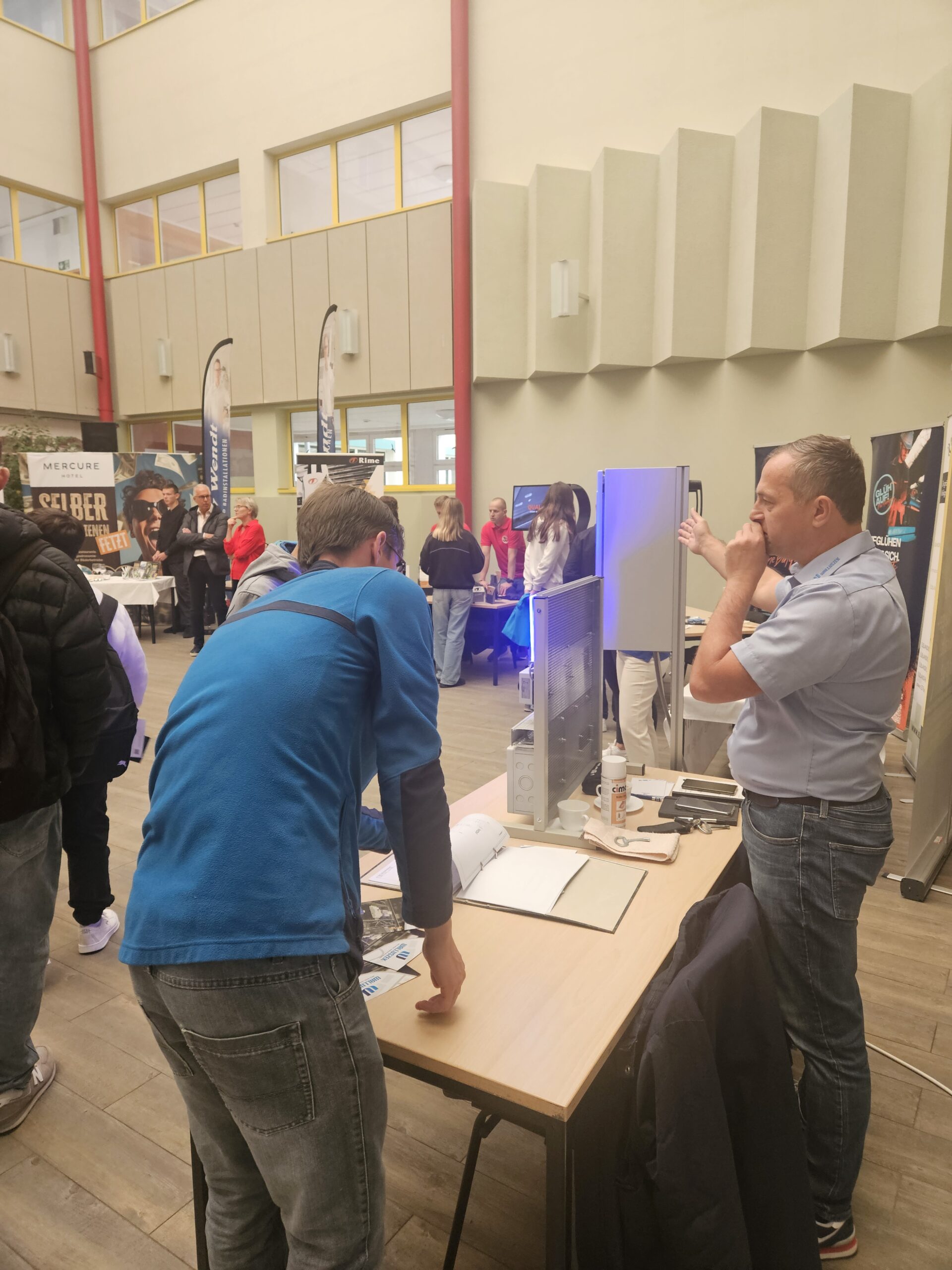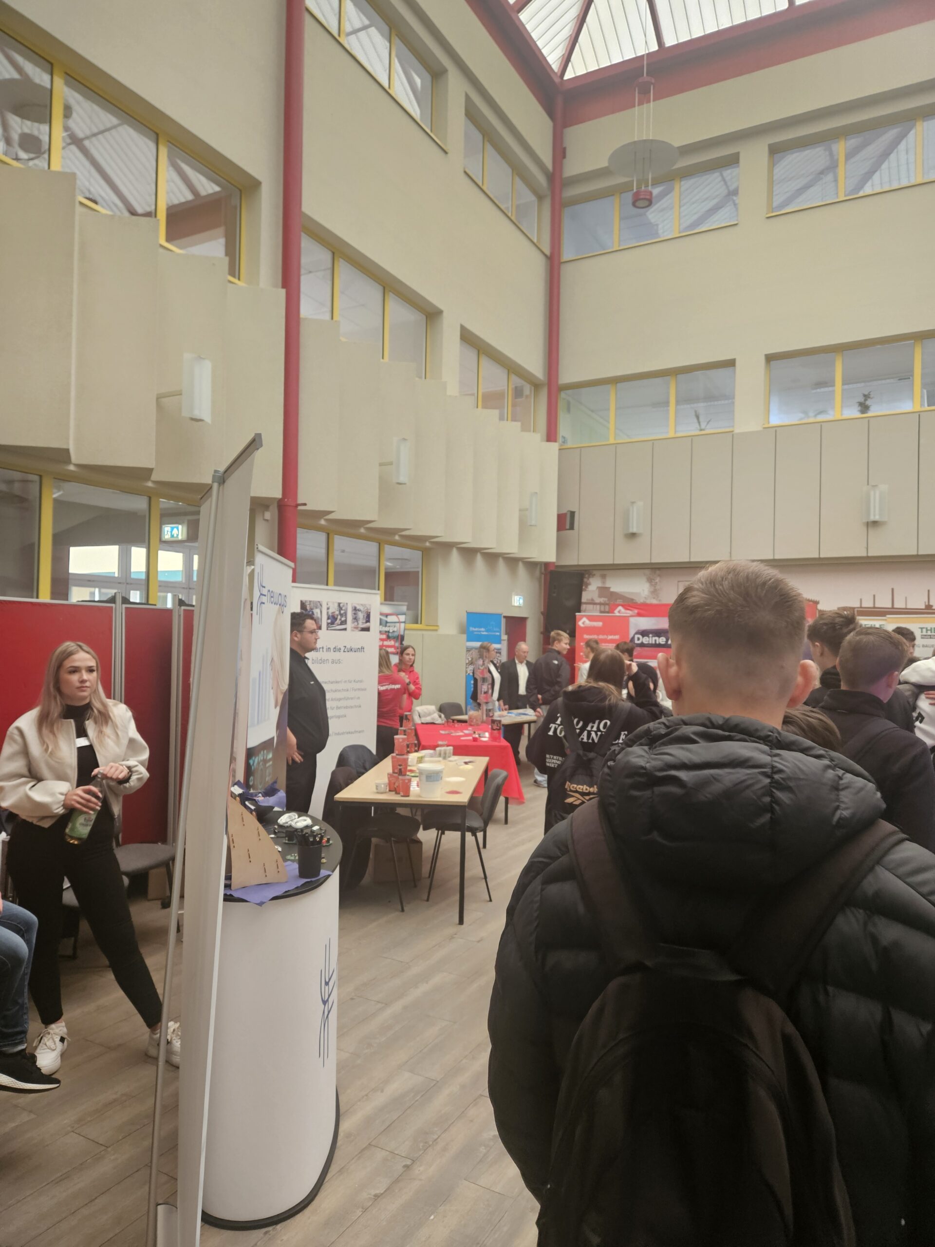 Am 02.10. fand als Highlight der Woche abschließend wieder unsere überregionale Messe statt. Mit über 20 beteiligten Unternehmen durften die Schüler Einblicke in viele verschiedene Berufsfelder nehmen und Experten Fragen zum beruflichen Alltag stellen. Ziel ist es, Schülern eine Vielzahl an Möglichkeiten von Ausbildungsplätzen aufzuzeigen, damit diese anhand ihrer persönlichen Stärken und Interessen eine geeignete Ausbildung finden und somit den Sprung in ein erfolgreiches Berufsleben schaffen.