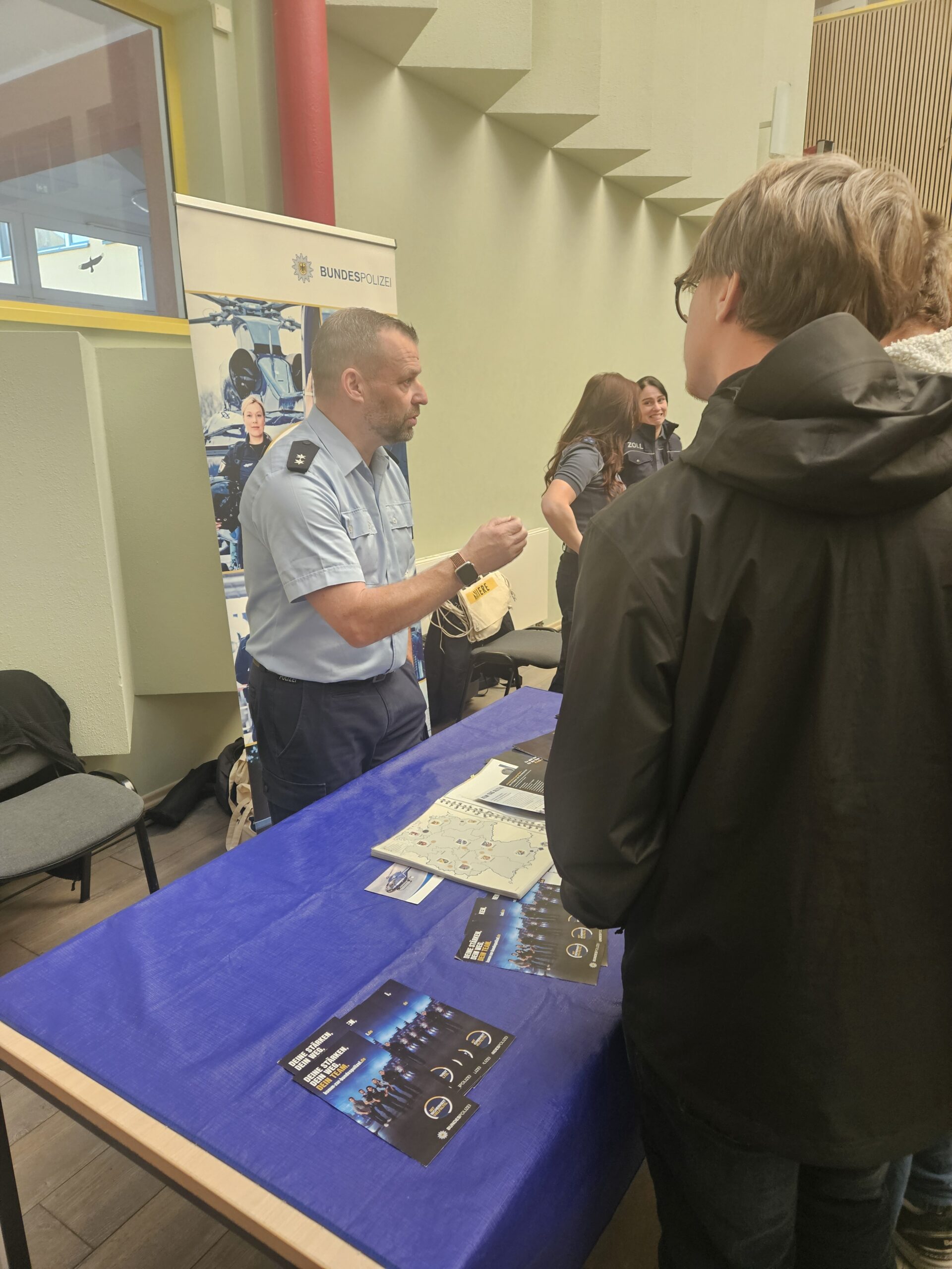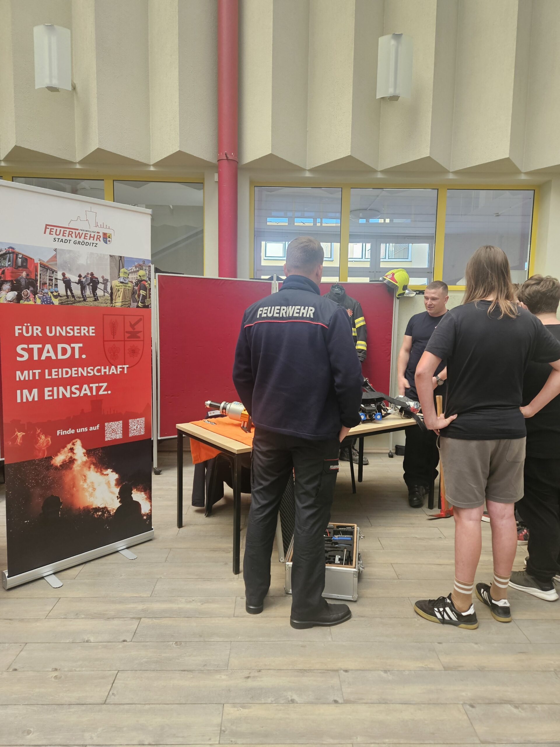 Am 30.09. fand der Tag der Uniformen statt. Uniformberufe wie z.B. die Polizei, Feuerwehr und Rettungssanitäter stellten ihren Beruf vor. Die Schüler hatten nicht nur die Gelegenheit, Fragen zu stellen, sondern durften sich auch selbst ausprobieren. Wie schwer fühlt sich eine Schutzweste der Polizei am Körper an? Wie lege ich einen Wundverband an? Diese und noch weitere spannende Fragen wurden praxisnah erläutert und sorgten bei vielen Schülern für bleibende Eindrücke.